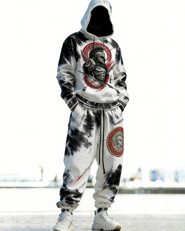 Men's Viking-themed Spartan embroidered hoodie and pants two-piece set 2189
