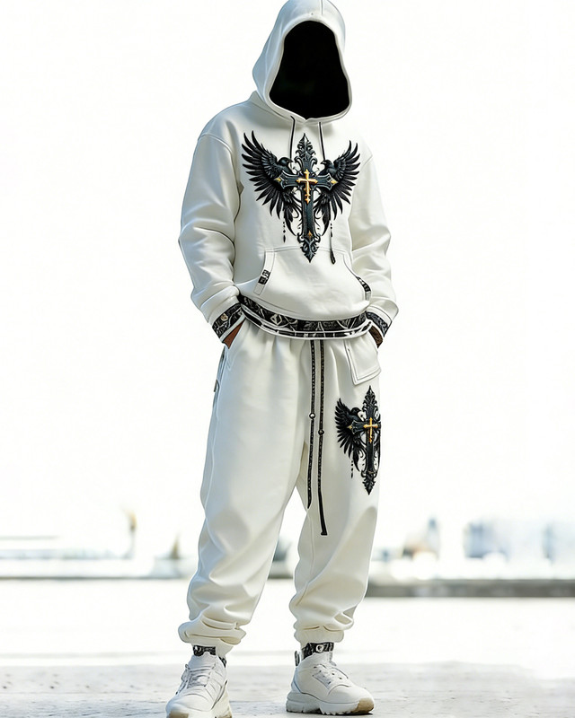 Men's Viking-themed cross-embroidered hoodie and pants two-piece set 6312