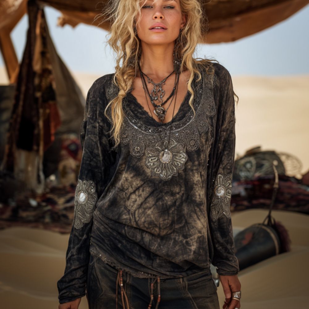 Mysterious Moon Sun Divination Art Linen Loose Top