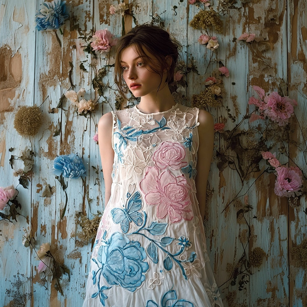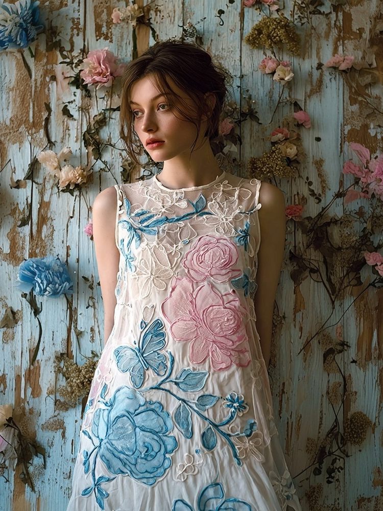 Trans Flag Color Inspired Lace Floral Linen Tank Dress