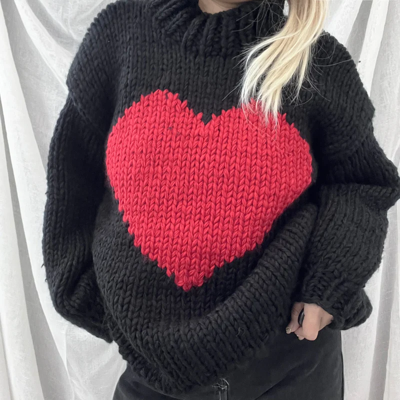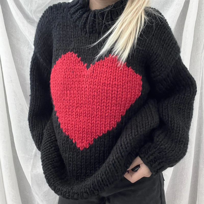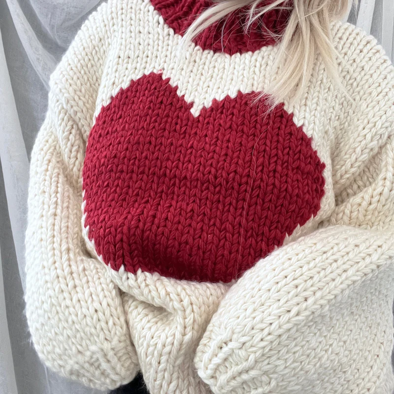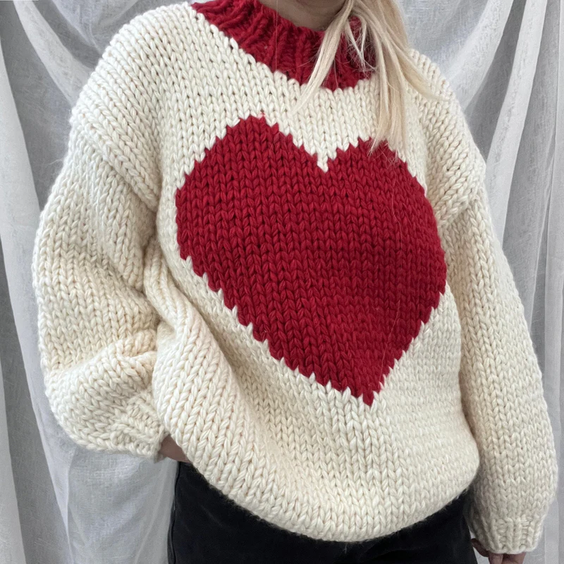 Valentine Love Heart Key To My Heart Hand Knit Chunky Sweater