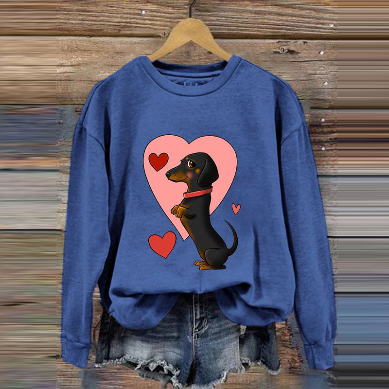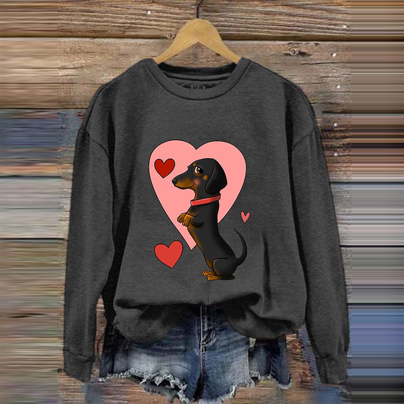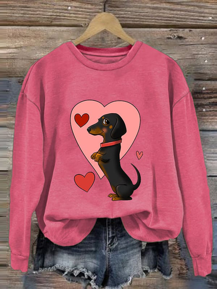 Valentine's Day Cute Dog Print Casual Sweatshirt