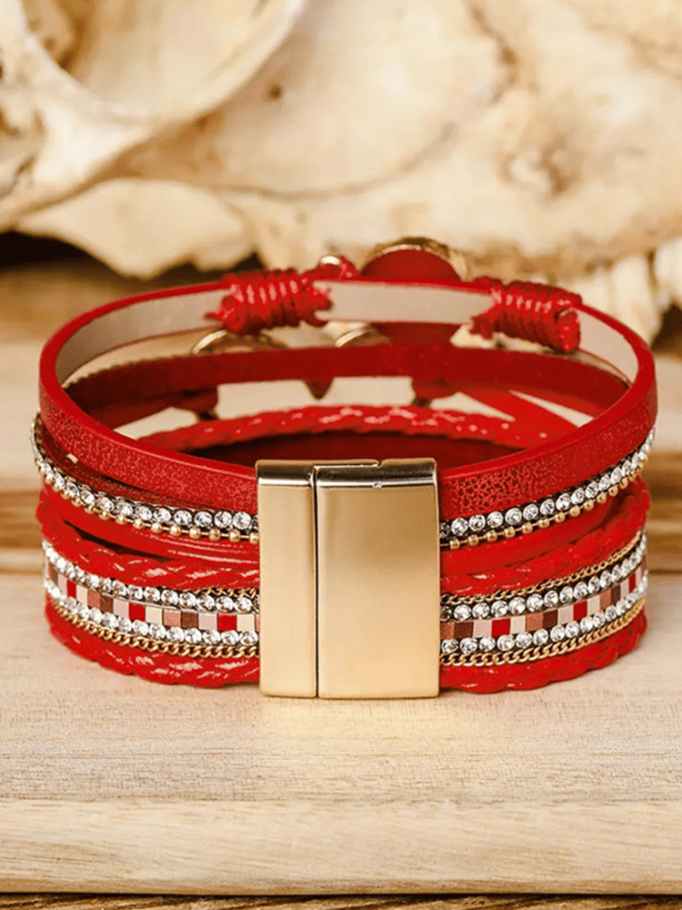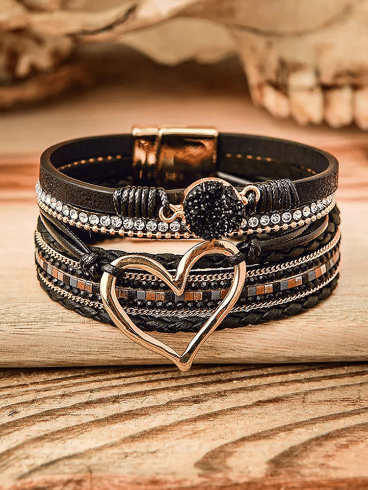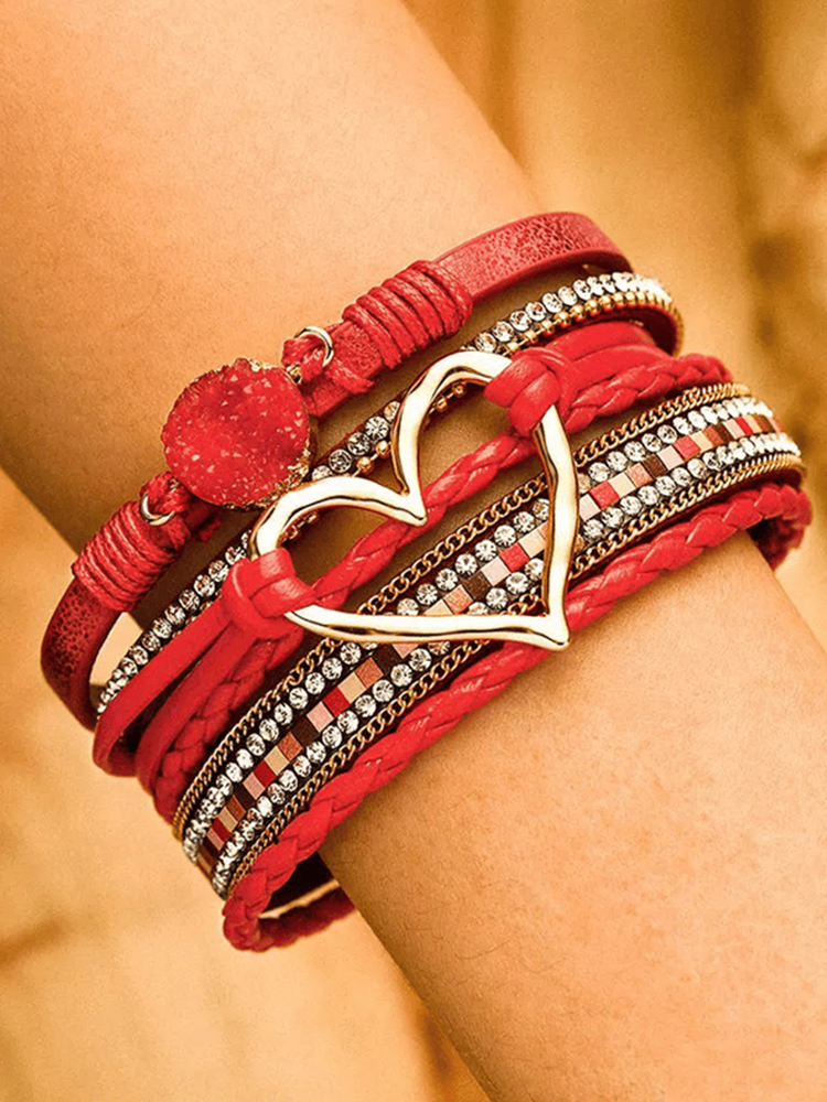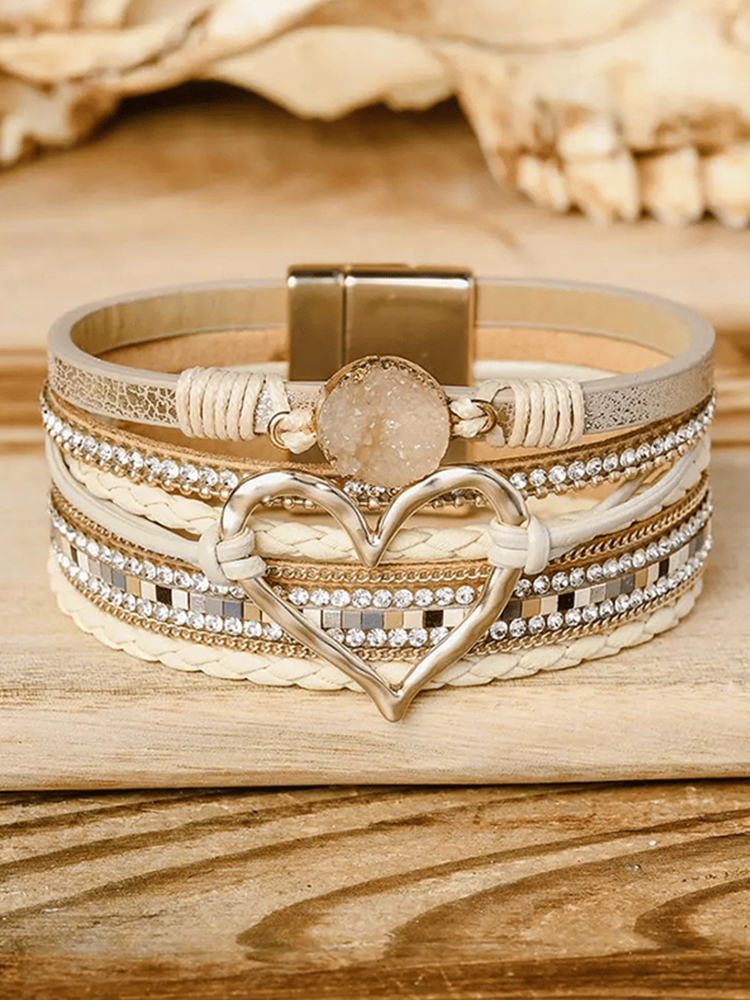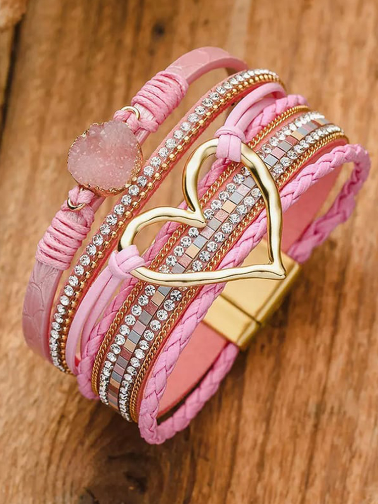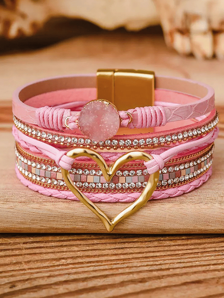 Valentine's Day Heart Rhinestone Magnetic Multilayer Bracelet