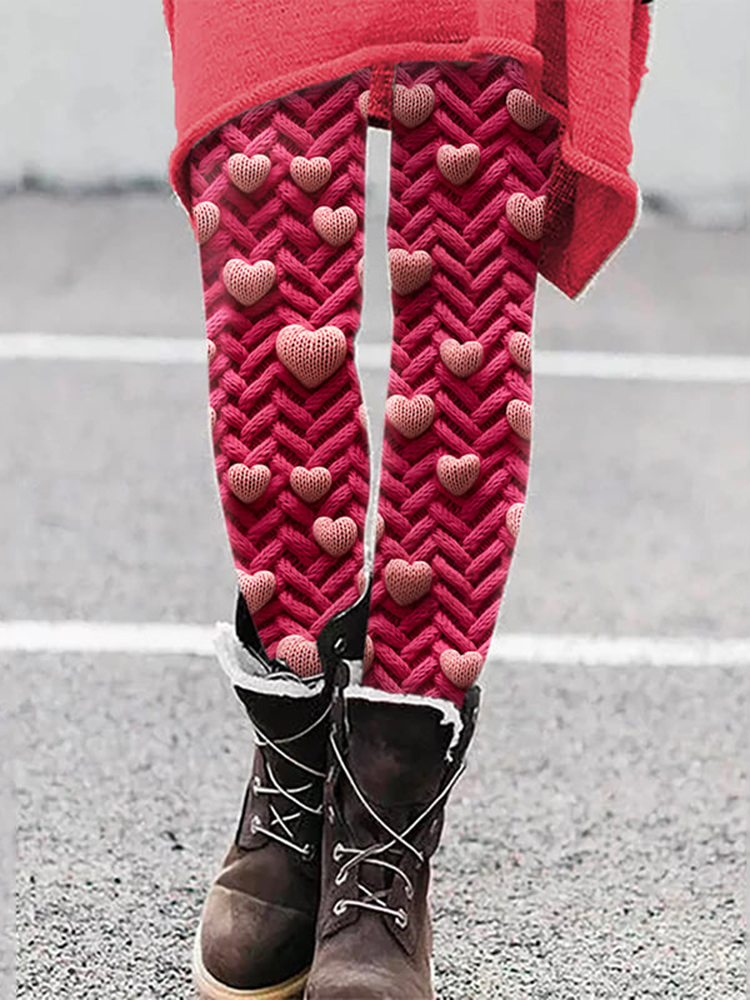 Valentine's Day Love Print Casual Leggings