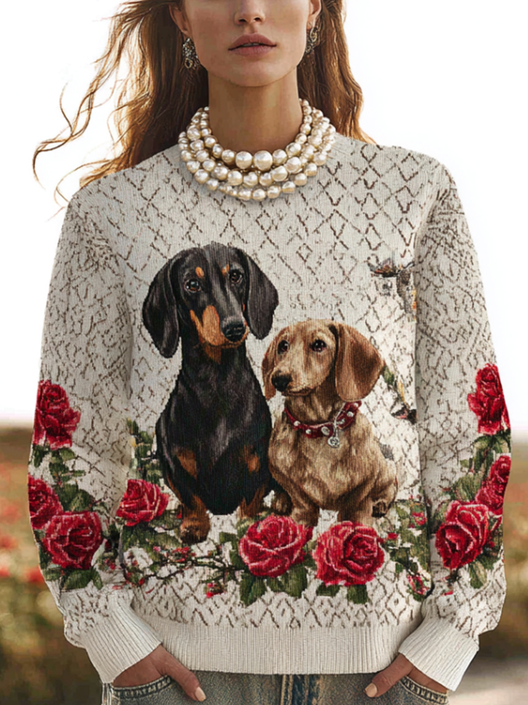 Valentine's Day Sausage Dog And Rose Turtleneck Sweater