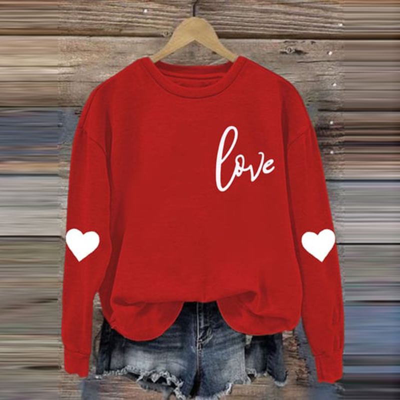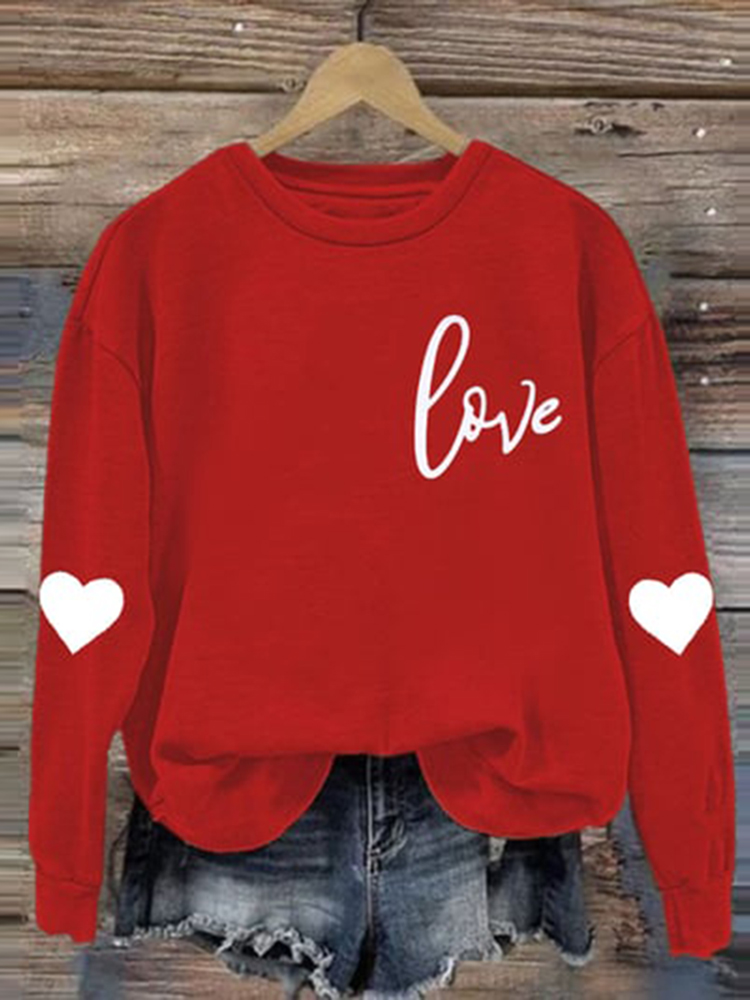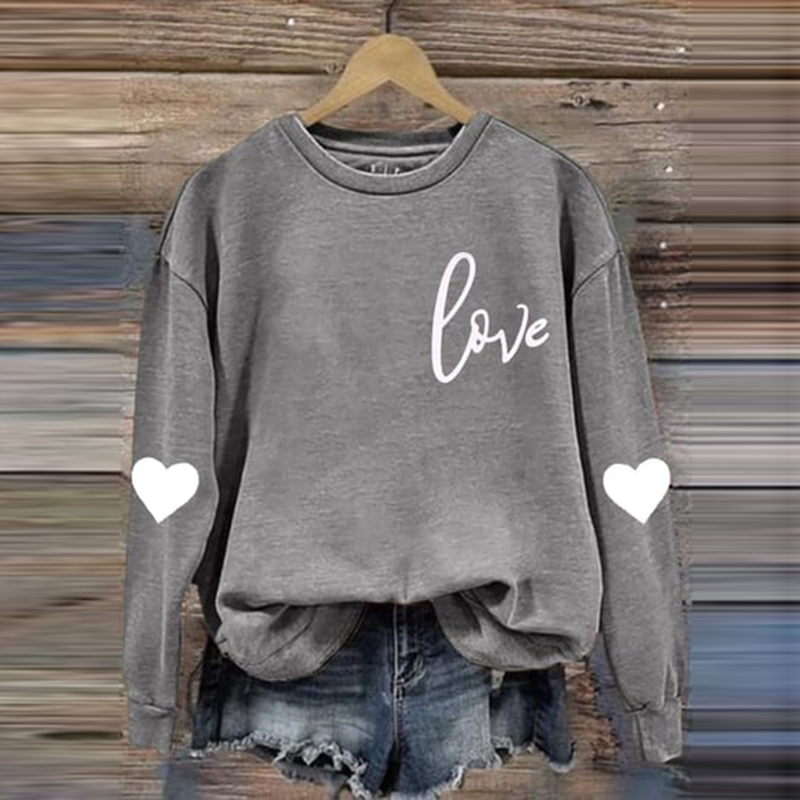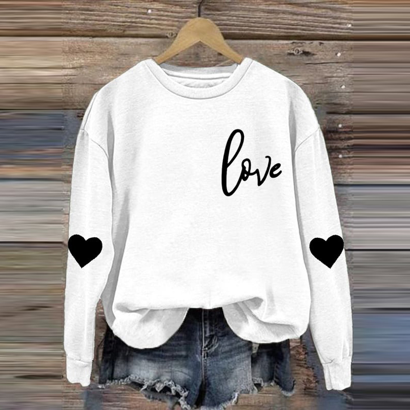 Women's Casual Heart Letter Printed Long Sleeve Sweatshirt