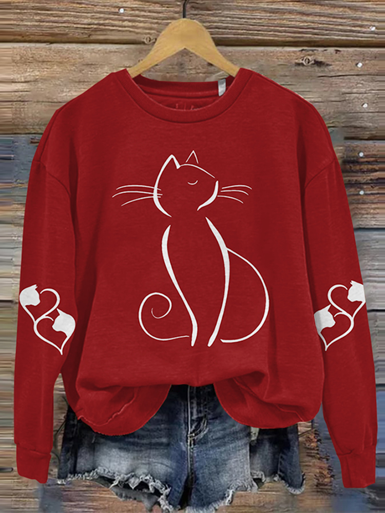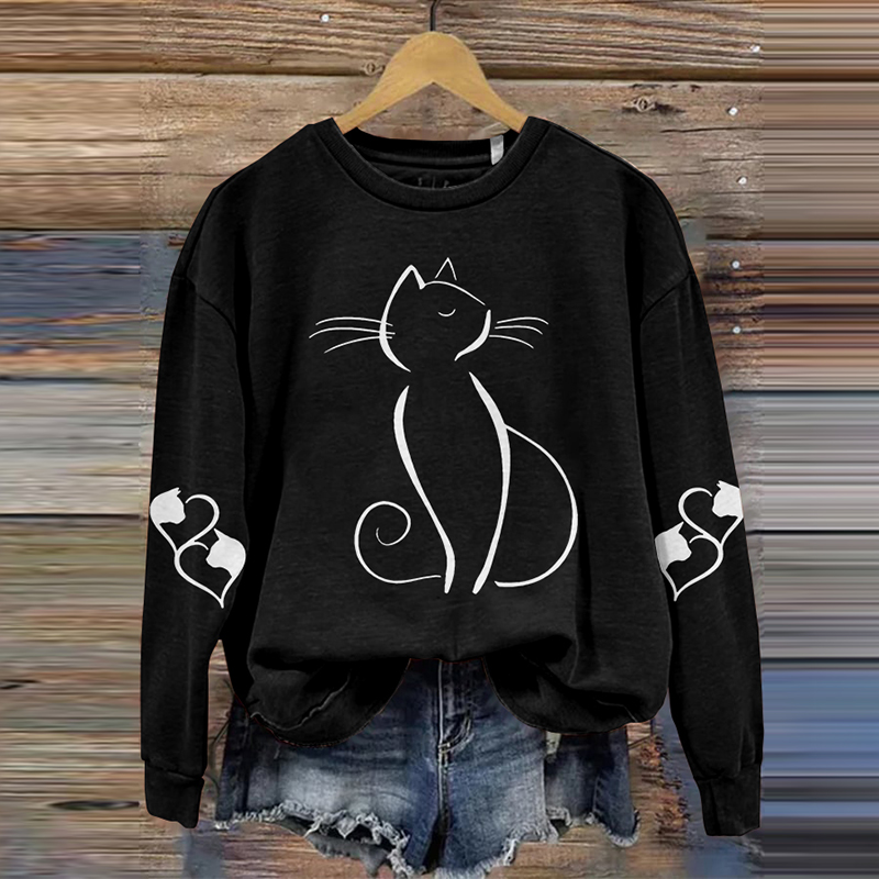 Women's Cute Cat Art Print Casual Sweatshirt