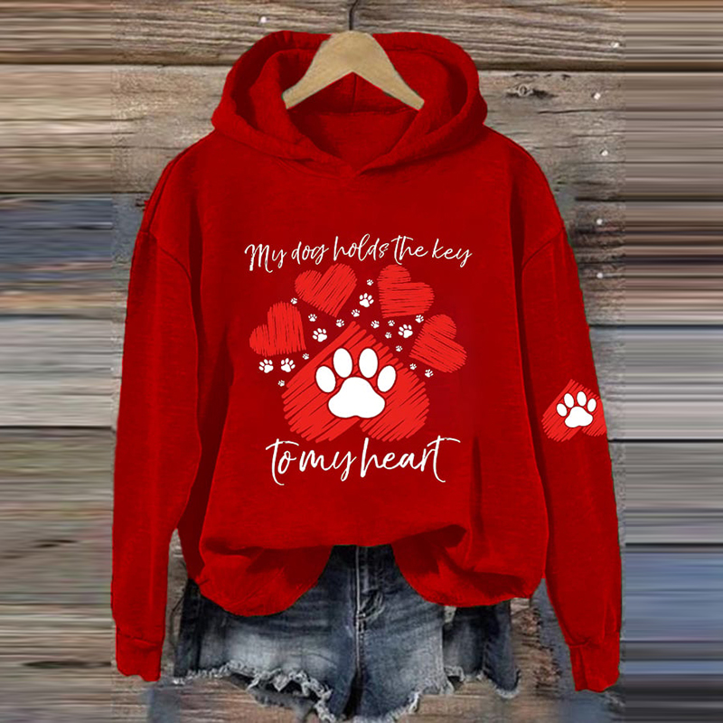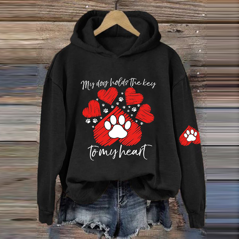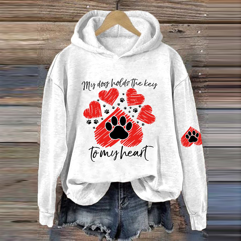 Women's My Cat Holds The Key To My Heart - Cute Valentine's Day Cat Print Hoodie Long Sleeve Sweatshirt