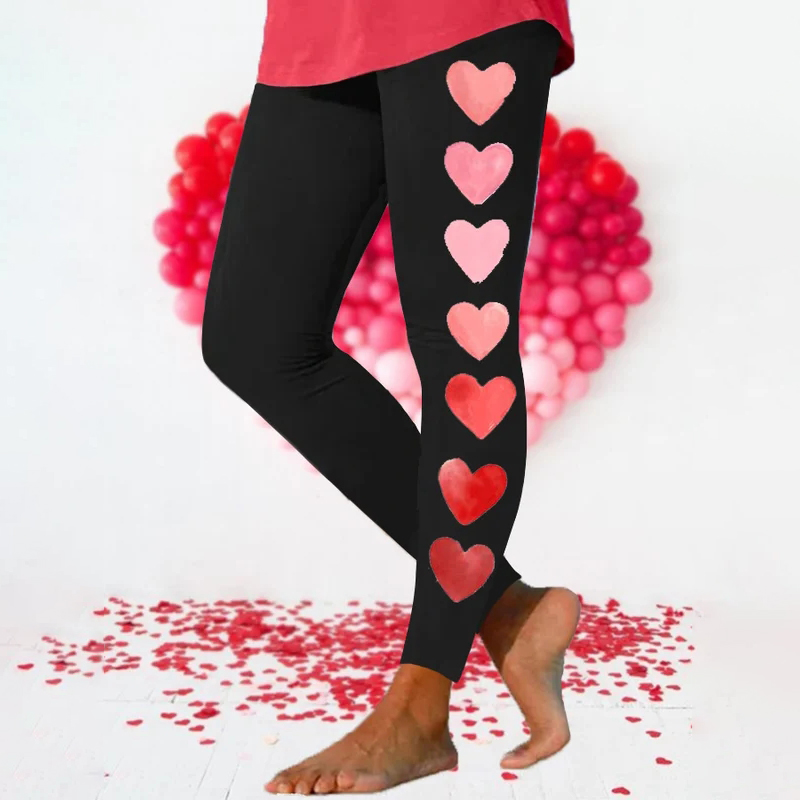 Women's Valentine's Day Heart Print Stretch Leggings