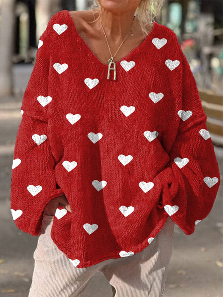 Women's Valentine's Day Love Heart Print Casual T-shirt