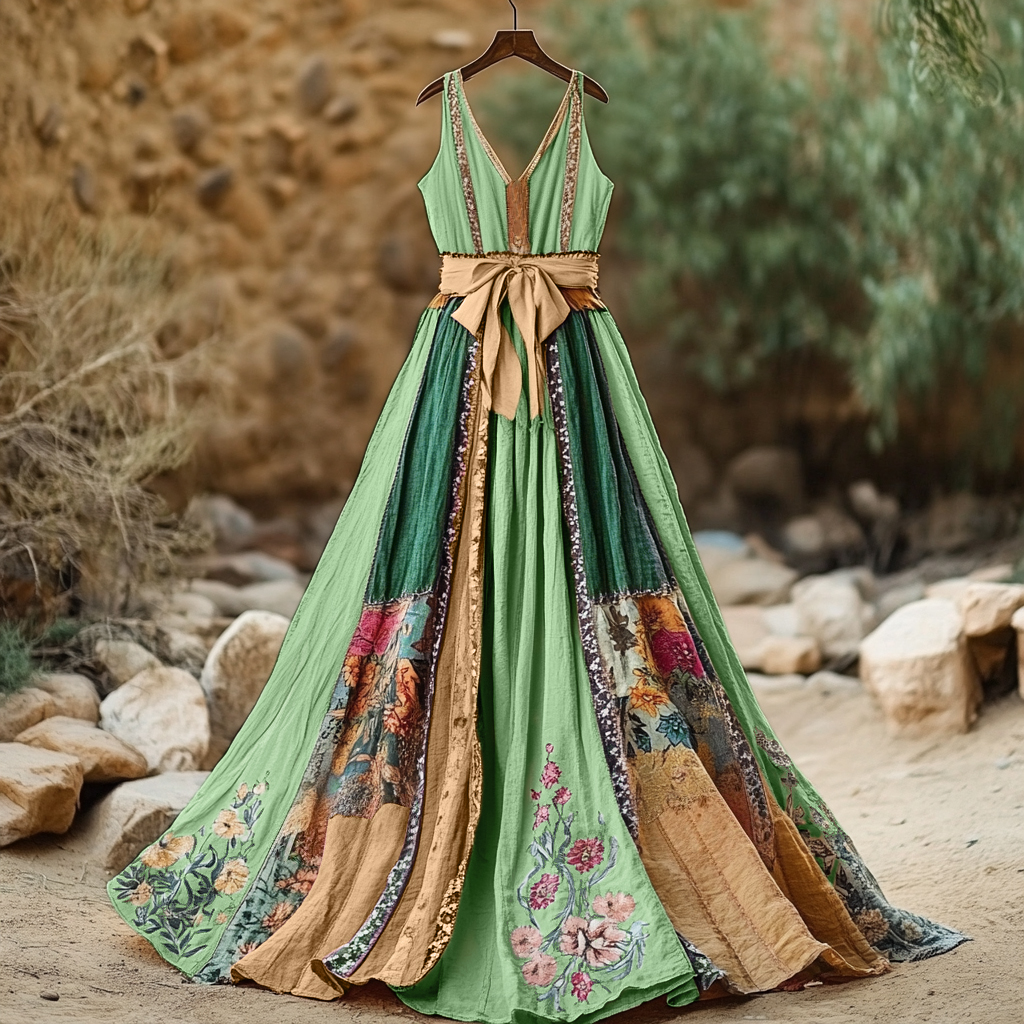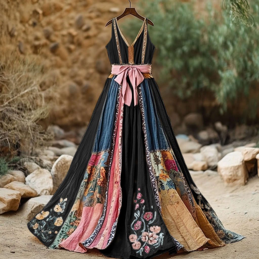 Women's Vintage Floral Art Linen Dress